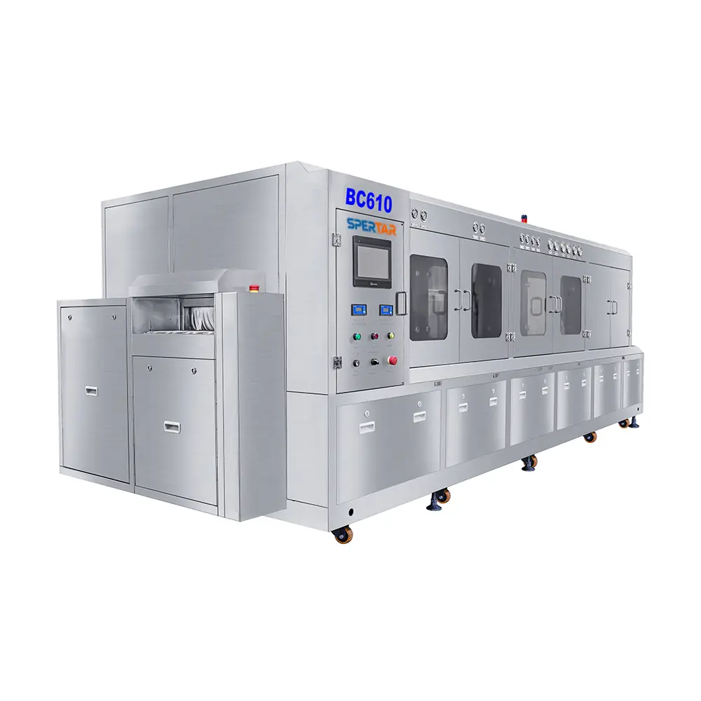 Fully automatic inline cleaning system for large batches PCBA, can clean rosin flux, no-clean flux and water-soluble flux.